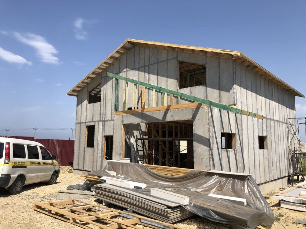 Ростверк изготовлен из калиброванного клееного бруса и защищен снаружи цементно-стружечной плитой