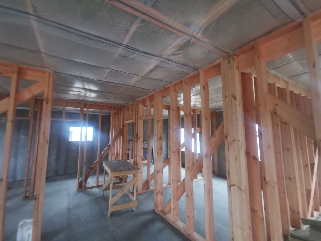 Ростверк изготовлен из калиброванного клееного бруса и защищен снаружи цементно-стружечной плитой