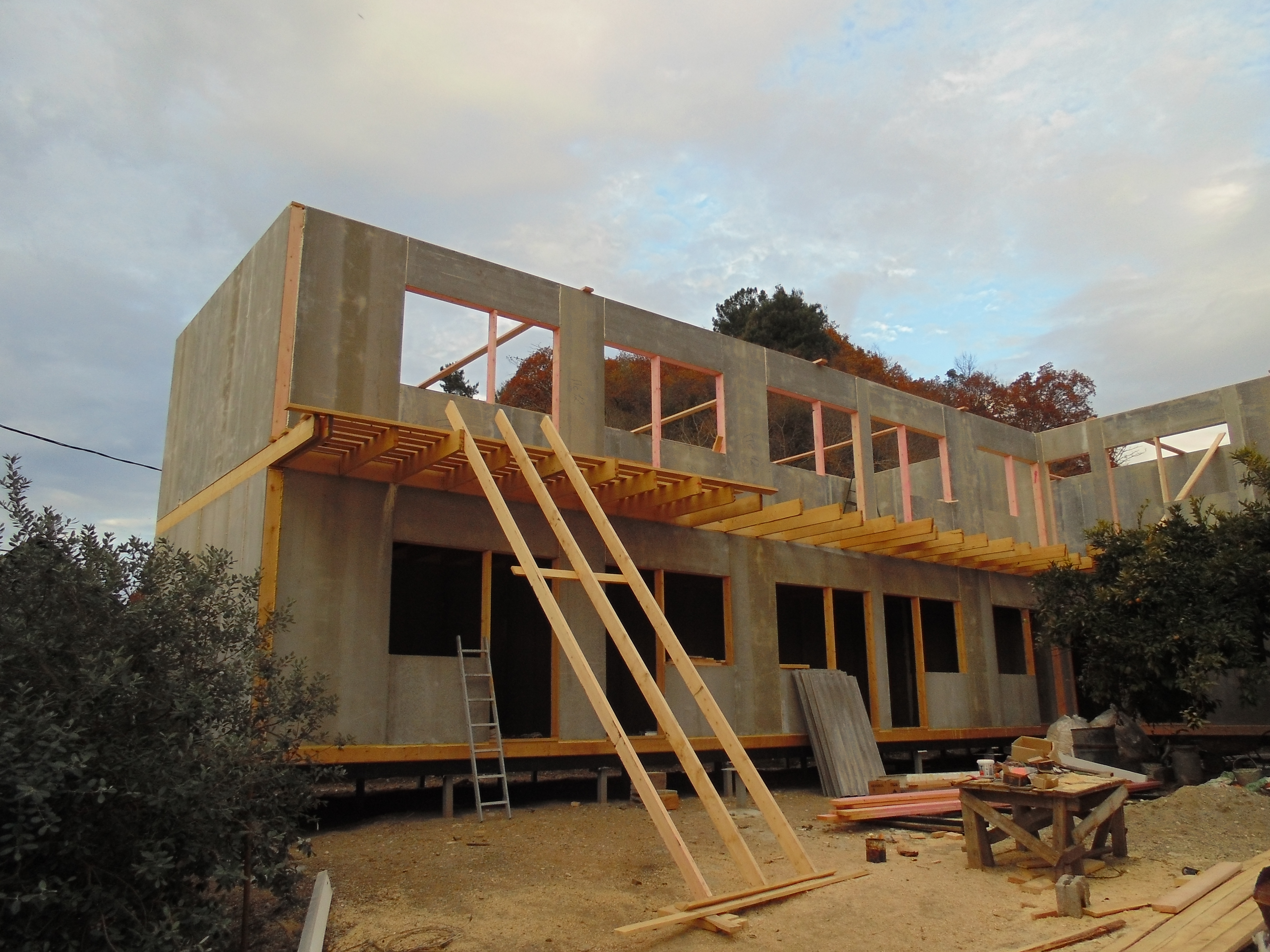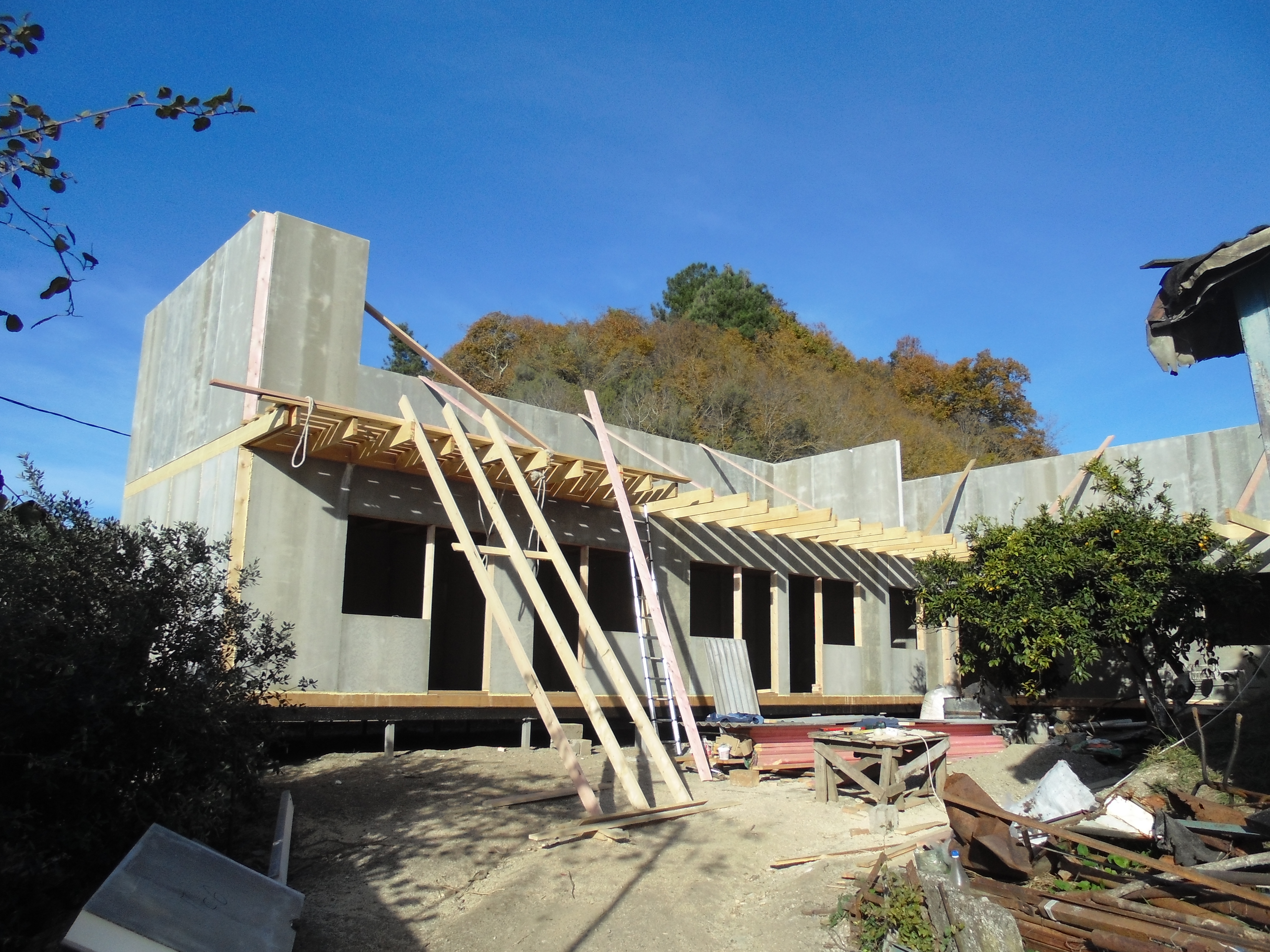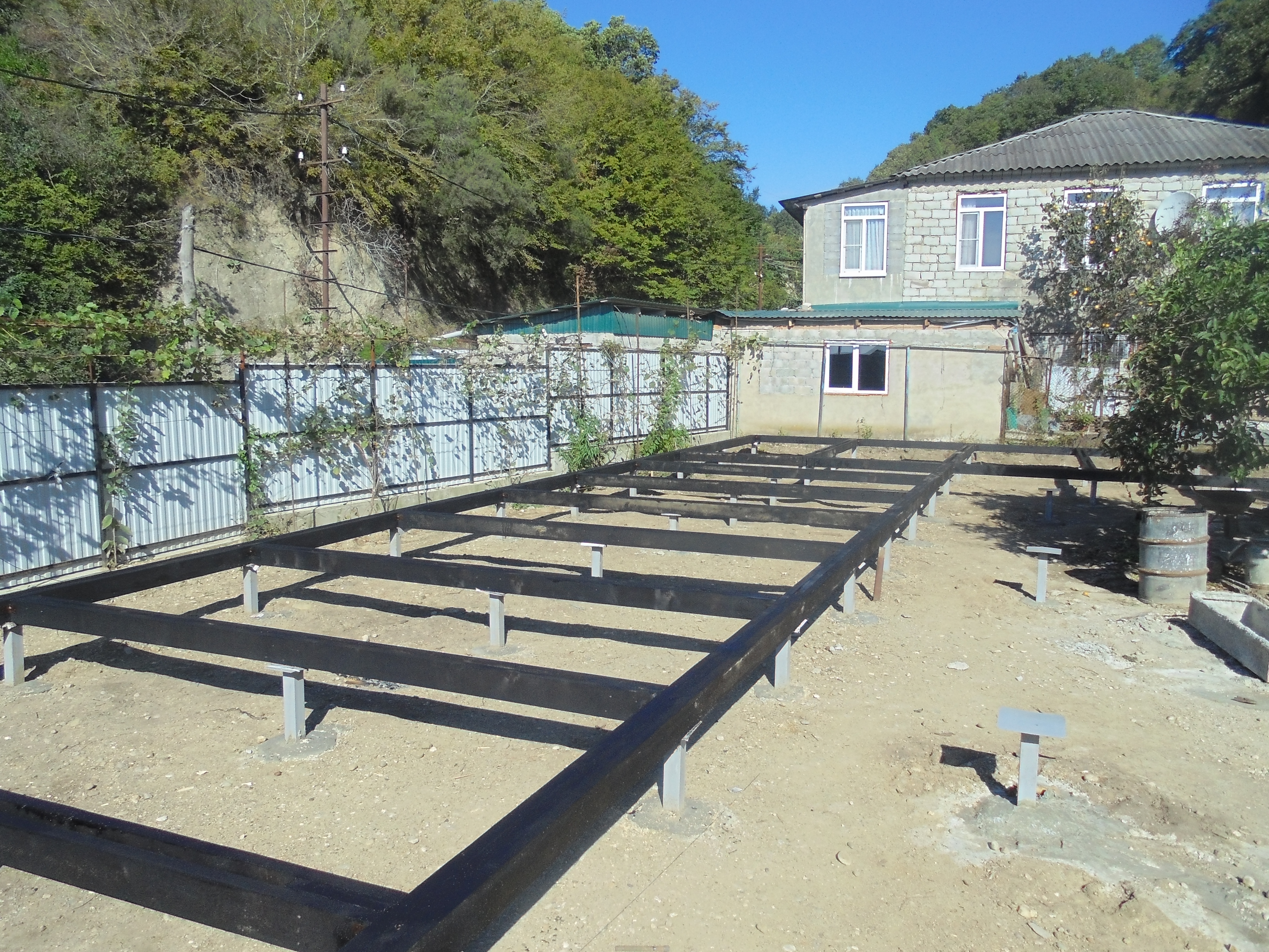 Ростверк изготовлен из калиброванного клееного бруса и защищен снаружи цементно-стружечной плитой