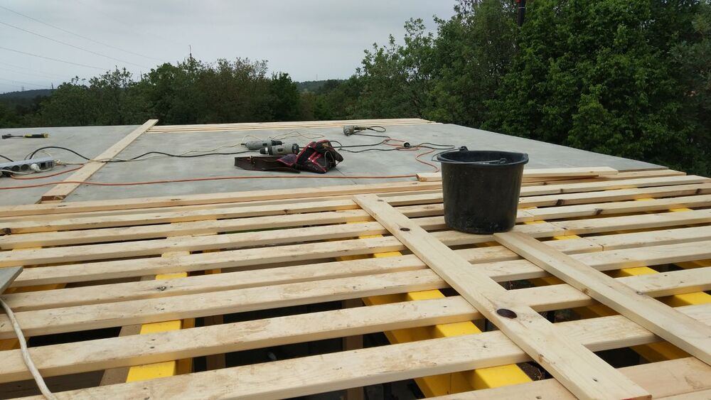 Ростверк изготовлен из калиброванного клееного бруса и защищен снаружи цементно-стружечной плитой