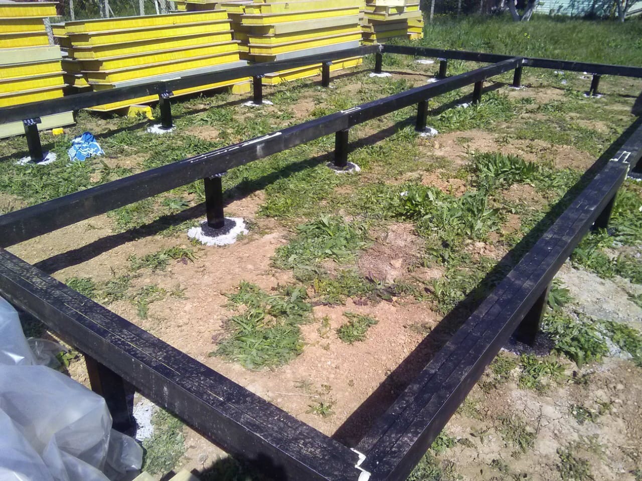 Ростверк изготовлен из калиброванного клееного бруса и защищен снаружи цементно-стружечной плитой