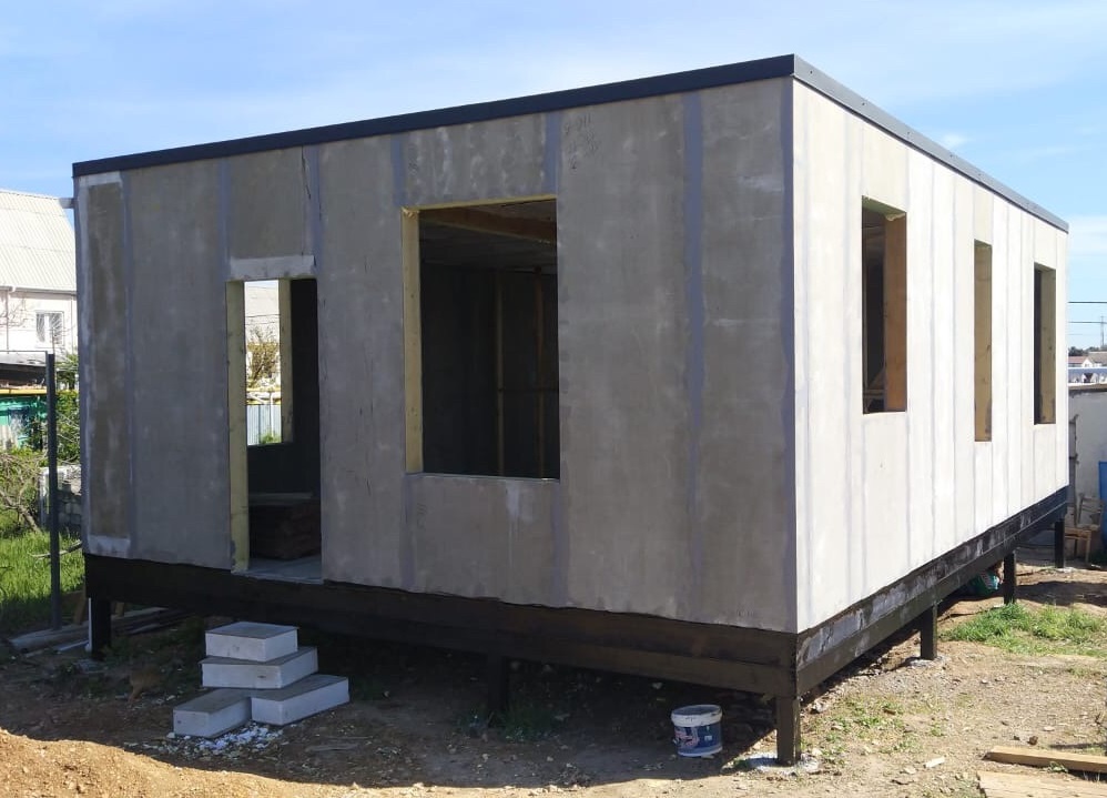 Ростверк изготовлен из калиброванного клееного бруса и защищен снаружи цементно-стружечной плитой