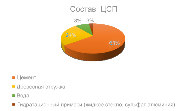 Цементно-стружечная плита представляет собой листовой стройматериал, который состоит из нескольких слоев. В качестве сырья используют стружку древесины хвойных пород и портландцемент марки М400-М500. Также в состав добавляются модификаторы, чтобы снизить чрезмерное насыщение влагой древесного сырья, а также предотвратить гниение и коробление изделия.