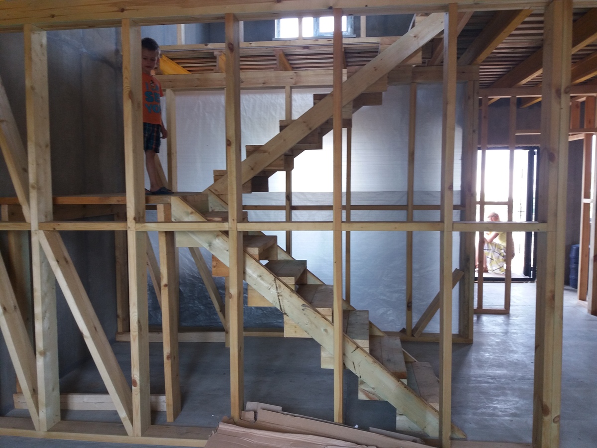 • Внутренние перегородки-каркас из сухой строганной доски: несущие 46х145 мм.. Стены готовы для обшивки листовыми материалами или декоративной доской.