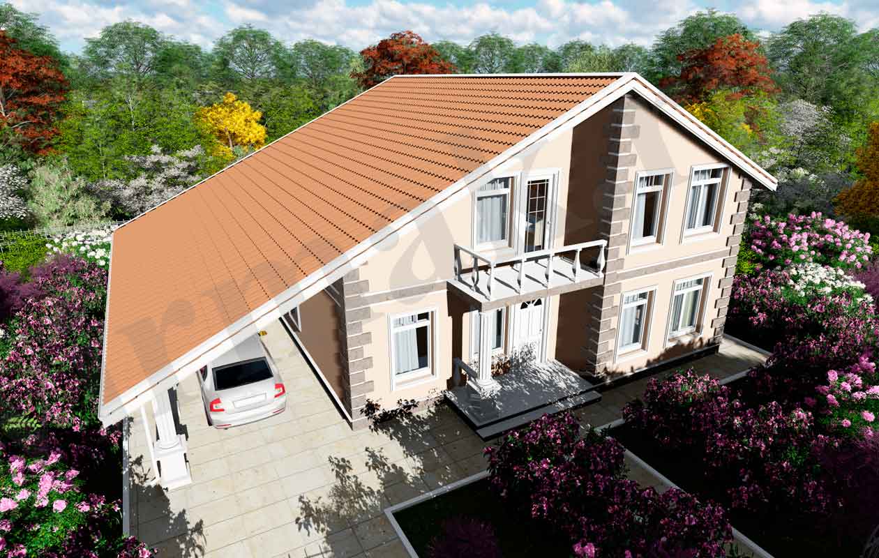 • Плоская или скатная утепленная кровля (пароизоляционная пленка, утеплитель вата на основе стекловолокна или базальта, гидро-ветрозащитная мембрана) с покрытием из металлочерепицы, полимерной мембраны или гибкой черепицы. (цена отличается от выбранного типа) (Ширина карнизного свеса от 30 см. Водосточная система в стоимость не входит