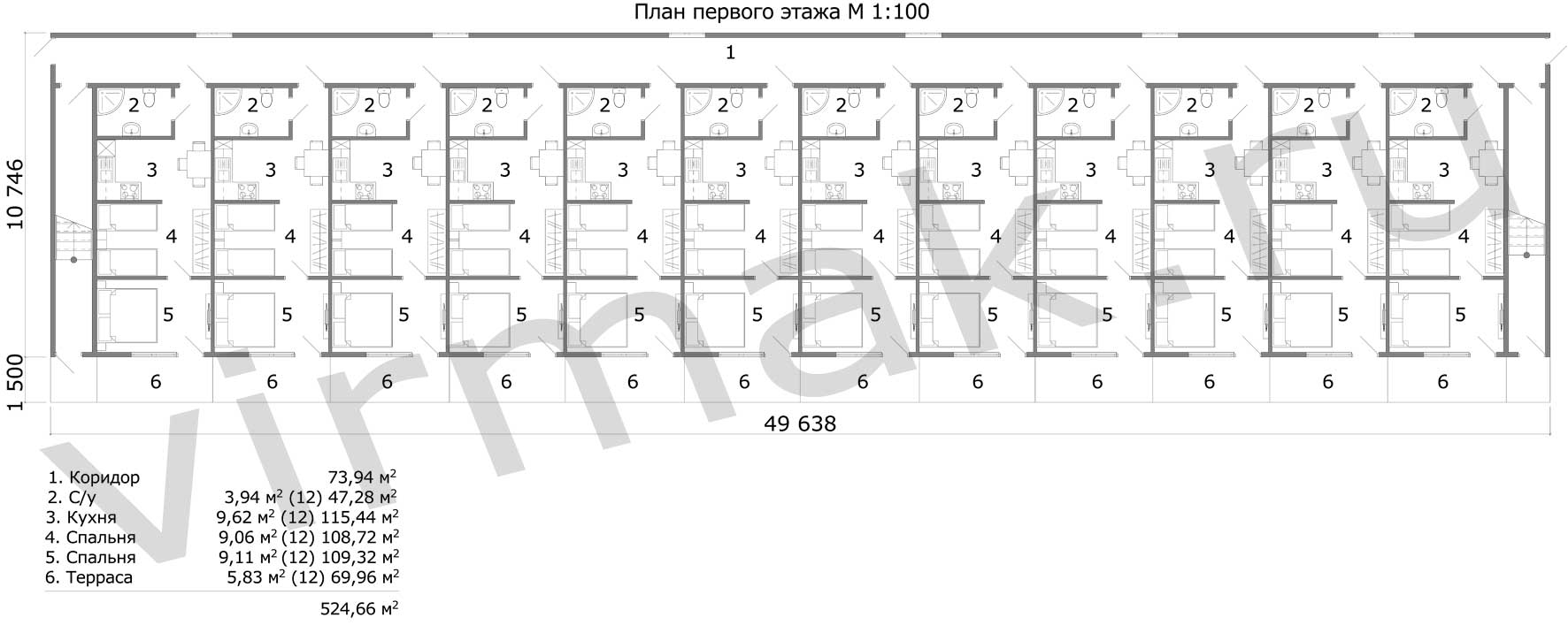Площадь террасы, м² 1 шт. 74.46