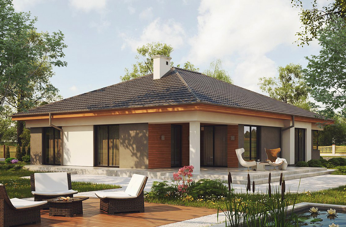 • Плоская или скатная утепленная кровля (пароизоляционная пленка, утеплитель вата на основе стекловолокна или базальта, гидро-ветрозащитная мембрана) с покрытием из металлочерепицы, полимерной мембраны или гибкой черепицы. (цена отличается от выбранного типа) (Ширина карнизного свеса от 30 см. Водосточная система в стоимость не входит
