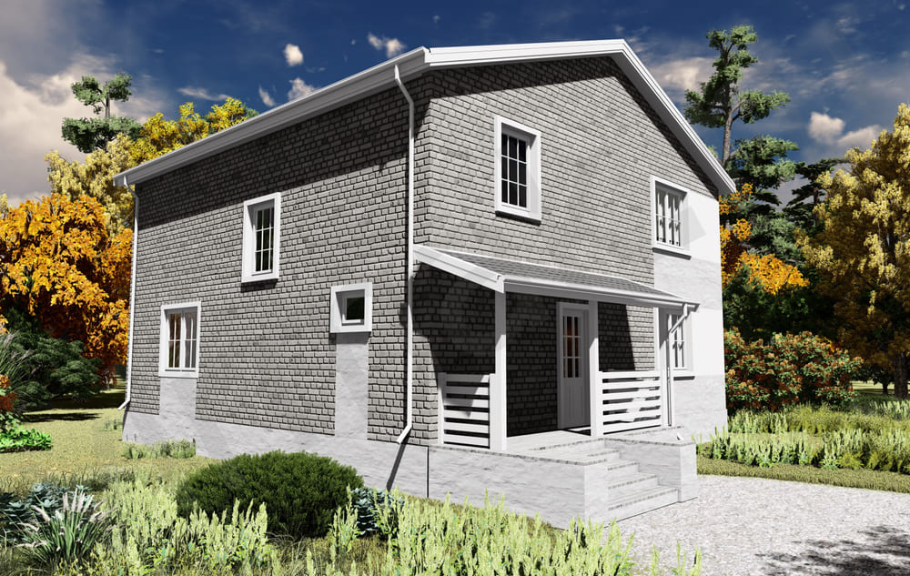 — материал готов для монтажа стен и укомплектован по проекту. В данном случае дом полностью готов к сборке стен, перегородок, а также каркаса межэтажного перекрытия.