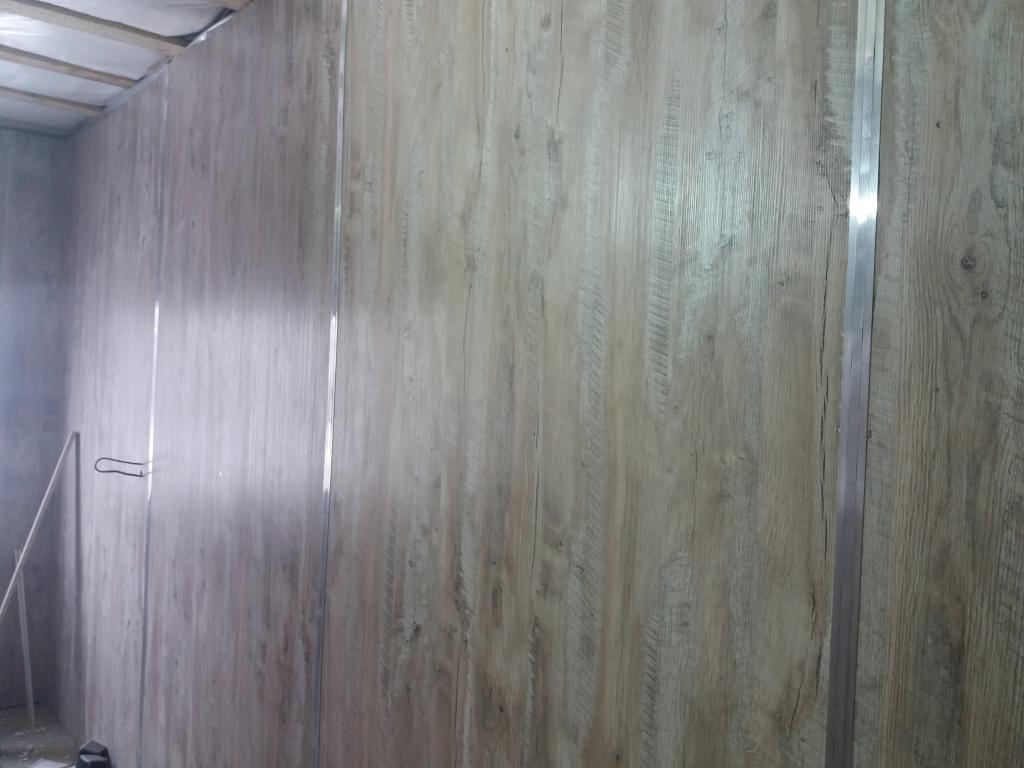 Хотелось бы обратить Ваше внимание на отделку стен в административно-жилом здании, расположенном на территории завода компании Вирмак. На внутренние деревянные каркасные перегородки мы сразу смонтировали финишный материал — ЛДСП через алюминиевый профиль. Это значительно более износостойкое покрытие, нежели покраска или обои, визуально более респектабельно воспринимается, монтируется в считанные минуты, а самое главное — это значительно более дешевое решение.