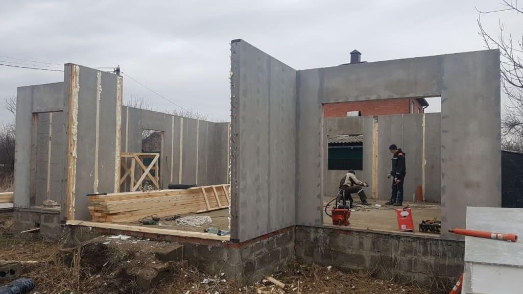Первое — это фундамент СИП панельного строения. Мы применяем различные фундаменты в зависимости от геологии, геодезии участка, а также, от пожелания наших заказчиков. Так, в Московском регионе мы в основном применяем винтовые сваи, на юге России — буроналивные железобетонные столбы или ленточный мелко заглубленный железобетонный фундамент.